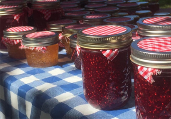 Jars of jam and pickles.